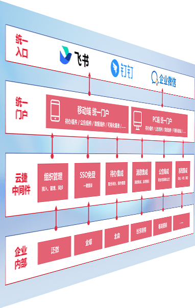 对协作平台提供支持服务,,支持企业应用与协作平台对接,,,,包含组织同步、、、消息集成、、、待办集成等。。支持目前主流的协作平台:钉钉、、、、企微和飞书。。